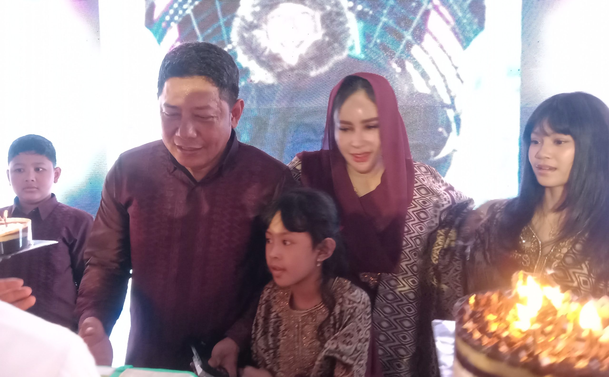 Acara itu, tak sekadar Iftar. Rupanya, Jojon juga merayakan hari jadinya ke – 45 tahun. Kue tart berukuran jumbo, menandai usia kematangan suami dari Ita Juwita. Dia pun kembali naik panggung bersama istri dan 2 buah hatinya, untuk meniup lilin hingga memotong cake yang diiringi lagu selamat ulang tahun dari Jamrud. (*)